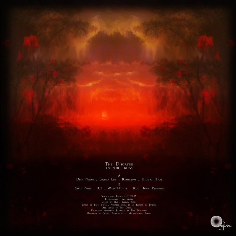 | With In Sore Bless, Cecilia and Ali emerge as The Discretes, following and cultivating diverse veins of sound. Post-noise ballads, distilled jams, fragments of Anatolian-Trip-Hop and other genre-amalgams, all become a supplicant at St. Cecilia’s altar, praying to be guided by her voice. Cecilia sings in English, French and Italian, calling to an omnipresent yet elusive love, binding, repelling, fragile, transient, spiritual. Her lyrics are recounted over a background of synth drones, hand percussion, electronic textures and a variety of strings. |